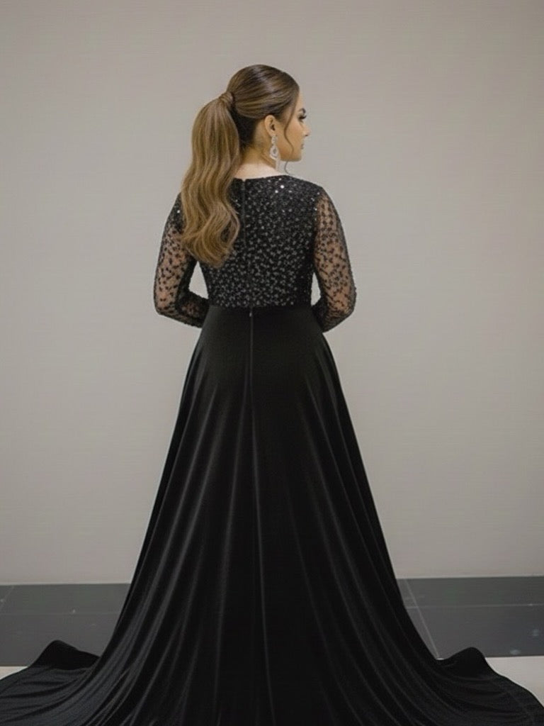Sequin embroiderd blouse with velvet flare